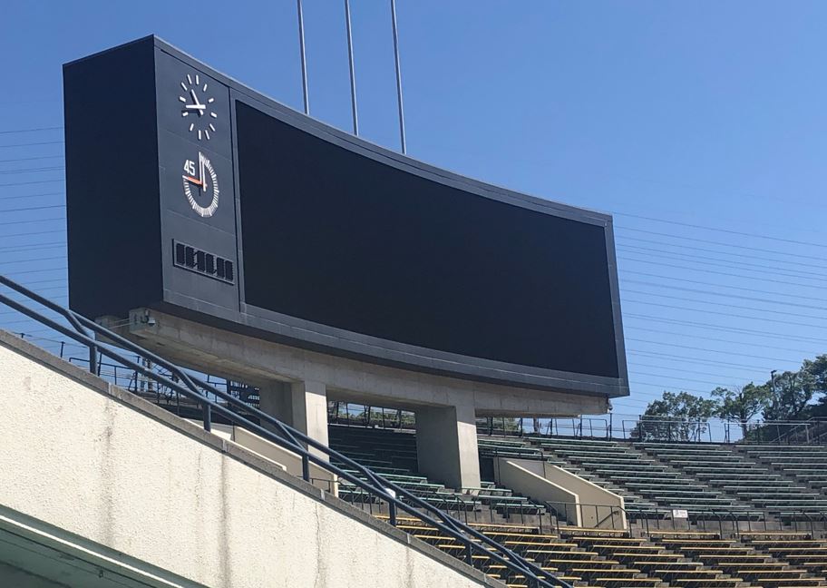 総合運動公園にあるユニバー記念競技場の大型映像装置(大型ビジョン)のパネルを更新する工事をさせていただきました。